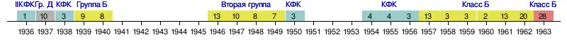 С 1936 по 1991 год команда выступала в чемпионатах и розыгрышах Кубка СССР. Ниже представлен список её сезонов в этот период.