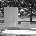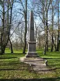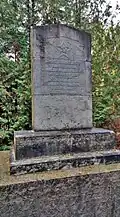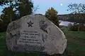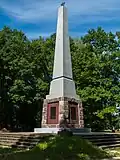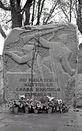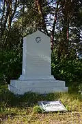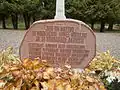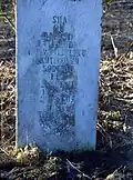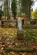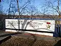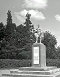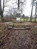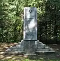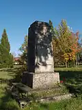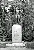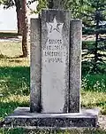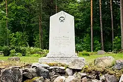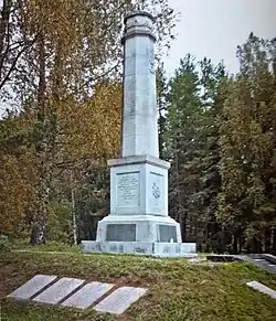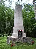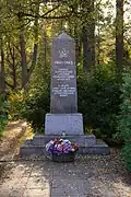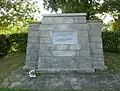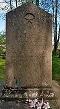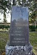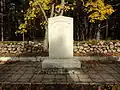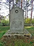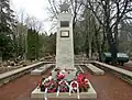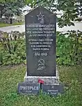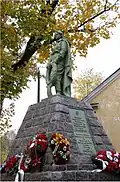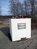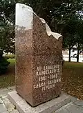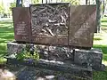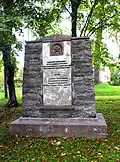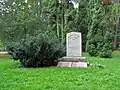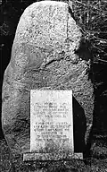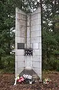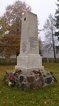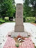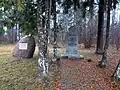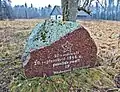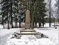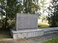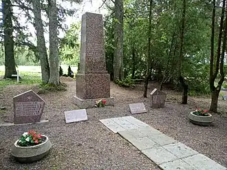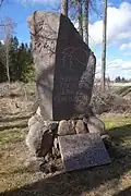 с 1997 до 2024 года[27]. Первоначальный бетонный советский памятник с другой надписью стоял перед зданием волостной управы, где также находится братская могила, современный памятник из валуна с чёрной гранитной плитой расположен к востоку от могилы на газоне и был установлен там в 1990-х годах. | ||