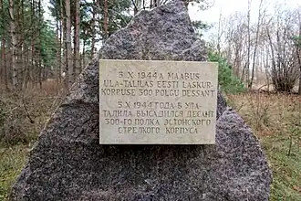 - ↑ II maailmasõjas hukkunud partisanide-langevarjurite mälestuskivi (эст.). Kultuurimälestiste register. Дата обращения: 6 февраля 2024. Архивировано 6 февраля 2024 года.