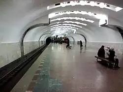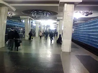 Тип — колонная. Предыдущее название «Метростроителей имени Г. И. Ващенко» (укр. Метробудівників імені Г.І. Ващенка) | ![]() | |||