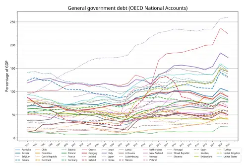 - ↑ General government gross debt (% of GDP) (англ.). МВФ. Дата обращения: 11 августа 2021. Архивировано 11 августа 2021 года.