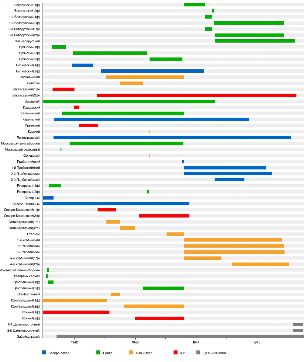 В таблице перечислены все управления фронтов, которые существовали во время войны, исключая управления фронтов ПВО.