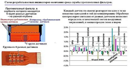 Перспективный датчик, используемый для определения приближения окончания срока службы противогазного фильтра (End of Servise Life Indicator ESLI)[106]