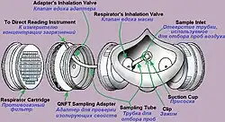 упоминается[99] размещение «газоанализатора в прозрачной клапанной коробке серийно выпускаемой лицевой части (ШМП)» для контроля момента отработки поглотителя ФПК (комплект «Индикатор).»