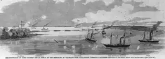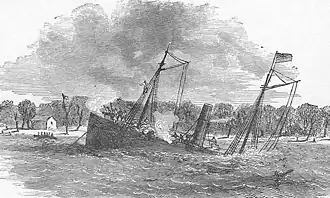 - ↑ Имеется в виду „Мошер“, приткнувший брандер к борту корвета; артиллеристы „Хартфорда“ уничтожили этот буксир со всей командой.