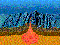 Срединно-океанические хребты являются вулканическими зонами с высокой сейсмичностью[3]. Океаническая кора в хребтах находится в постоянном состоянии «обновления» в результате процессов расширения морского дна и тектоники плит. Новая магма постоянно выходит на дно океана и вторгается в существующую океаническую кору в районе разломов вдоль осей хребтов. Породы, составляющие кору ниже морского дна, являются самыми молодыми вдоль оси хребта и стареют по мере удаления от этой оси. Новая магма базальтового состава возникает на оси и вблизи нее из-за декомпрессионного плавления в подстилающей мантии Земли[15]. Изэнтропически поднимающееся (апвеллинг) твердое вещество мантии нагревается выше температуры солидуса и плавится. Кристаллизованная магма образует новую корку базальта, известную как базальт срединно-океанического хребта, и габбро под ним в нижней части океанической коры[16]. Базальт Срединно-океанического хребта представляет собой толеитовый базальт с низким содержанием несовместимых элементов[17][18]. Общей чертой океанических спрединговых центров являются гидротермальные источники (чёрные курильщики), подпитываемые магматическим и вулканическим жаром[19][20]. Особенностью высоких хребтов является их относительно высокая величина теплового потока, варьирующаяся от 1 мккал/см²⋅с до примерно 10 мккал/см²⋅с.[21] (микрокалорий на квадратный сантиметр в секунду)