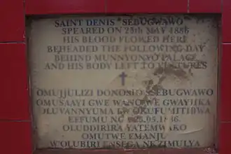 - 1 2 3 4 St. Denis Ssebugwawo (англ.). Munyonyo Martyrs' Shrine. Дата обращения: 10 июня 2020. Архивировано 25 мая 2020 года.