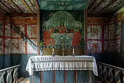 В 1760 году были обиты наружные стены. Лавки с богато украшенными боковинами датируются 1624 годом. Самая старая часть интерьера была, богато украшена живописью предположительно в 1656 году.