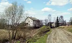 ![]() Вид на крайние дома Старково с юго-запада, со стороны Сафоново (2020) | |
