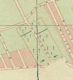 Первые захоронения на кладбище относятся к началу XIX века. Католические и православные захоронения были разделены проездом, вошедшим впоследствии в состав улицы Спокойной. Некоторые надгробия и ограды XIX и начала XX веков выполнены из драгоценных материалов на высоком художественном уровне и представляют собой произведения искусства пинских скульпторов, резчиков по камню, литейщиков и кузнецов.