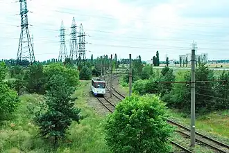 Вдоль трамвайной линии расположены тяговые подстанции, на стенах которых были выложены из кирпича другого цвета различные лозунги советской эпохи. В настоящее время большинство из них уничтожены либо подверглись вандализму, относительно неповреждёнными и читаемыми остаются «Честь и слава по труду!» в районе станции «Автокомбинат» и «Всё во имя человека! Всё во благо человека!» в районе станции «Нефтебаза».