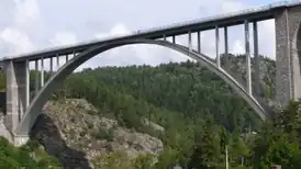 Мост арочный, имеет 7 пролётов. Боковые пролёты и опоры моста выполнены из гранита, центральный пролет — из железобетона. Полная длина моста составляет 420 м. Центральный пролёт имеет длину 165 м. Высота моста над уровнем воды составляет 58 м. На мосту две полосы движения и два пешеходных тротуара.