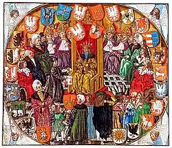 Чтобы заручиться поддержкой городенцев, Ягайло в 1391 году даёт городу первый привилей на самоуправление по Магдебургскому праву и укрепляет гарнизон крепости отрядом польских воинов. Но когда Витовт вместе с союзными крестоносцами во главе с Конрадом Валленродом[40] подошёл к городу, городенские воины закрыли польских солдат в башне и сдали крепость. За помощь в борьбе с Ягайло, Витовт позволяет крестоносцам построить в своих владениях три замка: Нойгартен, Метенбург и Ритенсведер[46].
