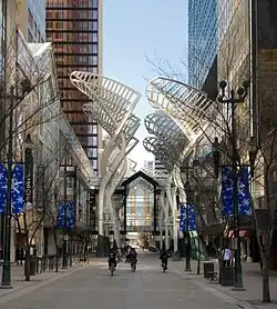 Стивен Авеню смежна с Центром имени Тимоти Итона, Центром Торонто-Доминиона, Центром Скошии, Банкирским Залом, Центром Собраний и Музеем Глэнбоу. Барклейская Аллея пересекает Степанское Авеню, чтобы связываться с микрорайоном Ау Клэрь.