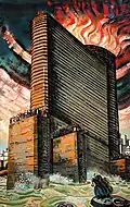 Она <нефть> горит уже не сдержанно, в сердцах людей, а открыто, на вершине башен и в алтарях храмов (неких таинственных древних огнепоклонников). А люди стоят в ритуальных позах, в застылости которых уже не чувствуется внутренней свободы. Скорее зависимость от этого — возможно, не такого уж вечного — огня.[1]Екатерина Дёготь