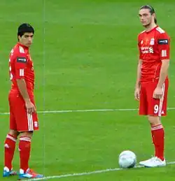 В январе 2011 года перешёл в английский «Ливерпуль» за 26,5 млн евро (22,8 млн фунтов). В оставшейся части сезона помог команде подняться с 12-го места на 6-е. 26 февраля 2012 года выиграл единственный трофей в составе «красных» — Кубок Футбольной лиги (2011/2012). Помимо награды лучшему игроку сезона английской Премьер-лиги, в апреле 2014 года Суарес стал первым неевропейцем — обладателем наград «Футболист года по версии Ассоциации футбольных журналистов» и «Игрок года по версии футболистов ПФА»[8][9]. Также, наряду с Криштиану Роналду, является обладателем европейской «Золотой бутсы» 2014 года (31 гол).