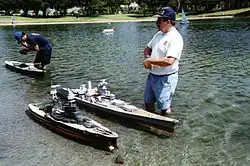 Радиоуправляемой судомоделью называется модель судна или корабля с аппаратурой управления на борту, в которую входят командный приёмник и так называемые рулевые машинки – вспомогательные электродвигатели в сборе с редукторами и с готовой обратной связью. На выходе рулевые машинки могут иметь как рейки, перемещающиеся вдоль себя, так и поворотные рычаги («качалки»). Обычно рулевые машинки используются для всего подряд от поворота рулей до переключения самостоятельно собираемых из так называемых микриков устройств, управляющих основными двигателями модели путём их коммутации. В одном положении рулевой машинки к двигателям подключается в прямой полярности вся аккумуляторная батарея, они получают полное напряжение питания, от этого их роторы вращаются с максимальной при данной нагрузке частотой. Это положение полного переднего хода. В другом положении к двигателям подключается лишь половина батареи в той же полярности, что приводит к снижению частоты вращения роторов. В третьем положении двигатели вообще отключаются от аккумуляторов, в результате чего модель ложится в дрейф. В четвёртом положении вся батарея или её часть подключается к двигателям в обратной полярности, что приводит к вращению роторов в обратную сторону. Это задний ход. Иногда делаются два задних хода: полный и средний. Если на модели установлены двигатели внутреннего сгорания, то одна из машинок может регулировать подачу топлива. На соревнованиях с такими моделями есть так называемый ход – этап, на котором модели должны, двигаясь по воде, пройти некоторую дистанцию, более сложную, чем у так называемых самоходок. При этом модели приходится поворачивать, а моделист, держа в руках передатчик и вводя в него команды для модели, управляет моделью во время прохождения дистанции. На прохождение дистанции в любом случае отводится предусмотренное правилами класса время. Если модель скоростная, то она должна за отведённое время пройти дистанцию максимальное количество раз подряд. Остальные модели проходят дистанцию один раз за попытку, задача же – пройти дистанцию точно. На дистанции в этом случае есть ворота. Каждые ворота обозначаются парой рядом расположенных буёв. Чтоб ворота засчитали, модель должна пройти между буями, не пересекая после попытки прохождения предыдущих ворот створ данных ворот (линию, проведённую через их буи) вне самих ворот. Причём, если модель коснётся одного из буёв, то часть цены ворот снимается. В дистанции некоторых классов входит так называемая швартовка в доке, ширина которого определяется по формуле, в которую подставляется ширина корпуса модели. В общем случае формулы могут различаться для разных классов. Швартовка модели – это заход в док без касания и остановка в нём только двигателями с последующим их выключением, но без закрепления модели с помощью причальных приспособлений, после чего моделист должен показать, что больше не управляет моделью, убрав руки с передатчика, но не выключая его. Судьи же смотрят, действительно ли модель остановлена. При касании носом швартовка не засчитывается. При одном касании бортом снимается половина цены дока. При двух и более касаниях одним или обоими бортами швартовка не засчитывается. Многокомандная модель вместо прохождения стандартной дистанции должна выполнить некие действия