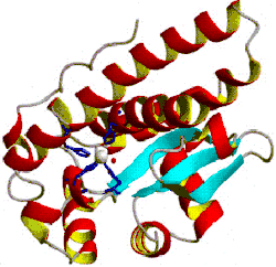 - Митохондрии эукариотических клеток и многие бактерии содержат супероксиддисмутазу с Mn (Mn-СОД). Например, митохондриальная СОД человека: PDB 1N0J (недоступная ссылка), EC 1.15.1.1, молекулярная масса 86-88 кДа. Марганец в этом ферменте координирован с белком через 3 гистидина и аспартат и с водой либо гидроксильным лигандом в зависимости от окислительного состояния Mn (Mn(II) или Mn(III)).