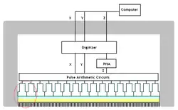 Аналогичный принцип регистрации гамма-фотонов от изотопов используется в однофотонной эмиссионной компьютерной томографии (ОФЭКТ) для создания трехмерных томограмм с помощью вращающихся детекторов.