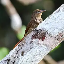- ↑ Dendrexetastes rufigula (англ.). The IUCN Red List of Threatened Species.