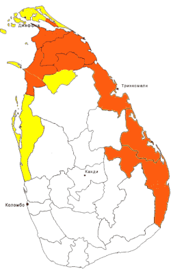 ![]() Территория, на которую претендовал Тамил-Илам, на карте Шри-Ланки (зелёным) |