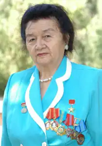 в 1971—2006 гг. — директор совхоза «Енбекши». Под её руководством одно из самых проблемных сельскохозяйственных предприятий республики уже в конце года оказалось в числе лучших, получив рекордный урожай сахарный свеклы. Этот результат был отмечен званием Героя Социалистического Труда.