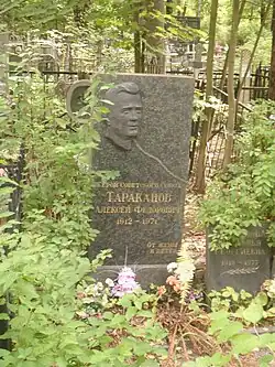 Скончался 30 ноября 1971 года, похоронен на Богословском кладбище Санкт-Петербурга (участок 5,7 м восточнее Выборгской дорожки); на могиле установлен обелиск из габбро-диабаза с барельефным портретом.