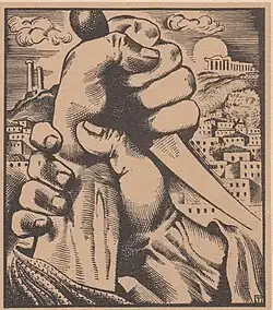 25 марта 1943, в годовщину Греческой революции 1821 года, находясь в подполье, он выпустил альбом гравюр Сопротивления, соавторами которого вместе с ним были гравёры Катраки, Васо, Майору, Лукия и Веллиссаридис, Георгиос. В 1944 году подпольная организация ΕΑΜ-художников приняла решение участвовать в всегреческой выставке, проводившейся под контролем оккупантов. В результате через несколько дней немцы закрыли выставку. Художники Тассос, Кефаллинос, Корояннакис, Канас были арестованы.
