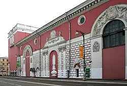 Глухая плоскость бокового фасада вдоль Советской улицы рустована в нижнем ярусе и украшена тремя декоративными аркадами, заполненных скульптурой, что отвечает общему архитектурному облику центра города, сложившегося в эпоху русского классицизма[16].