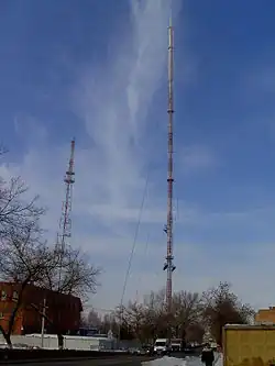 Чуть позже была введена в эксплуатацию передающая башня высотой 180 м и радиорелейная линия Москва — Серпухов — Лаптево (ныне Ясногорск) — Сталиногорск (ныне Новомосковск), что позволило начать трансляцию одной радио и телепрограммы. Это был 5 метровый канал, на котором и по сей день вещается первый Российский канал.