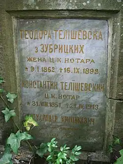 Умер 21 апреля 1913 года в г. Бучач (ныне Тернопольская область, Украина). Похоронен в семейном склепе Зубрицких-Телишевских на Лычаковском кладбище Львова, поле № 7.[8]