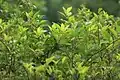 Небольшие кустарники примечательны прежде всего окраской молодых листьев (красноватых или бронзовых оттенков). Используется в групповых посадках преимущественно у водоёмов. | |