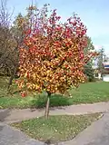 Используется преимущественно в качестве одиночного растения. Отличается особо красочной листвой в осенний период. | ||