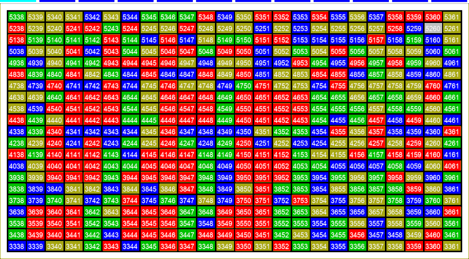 - , то есть основной цвет (всех элементов кроме последнего) у каждой прогрессии свой.