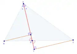 Данный способ доказательства основан на продлении биссектрисы до пересечения с ней перпендикуляра, опущенного на нее из одной из вершин.