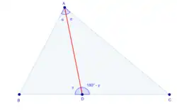 - Если D — произвольная точка на стороне BC треугольника ABC, тогда