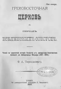 - «Греко-восточная церковь в период вселенских соборов. Опыт руководства по церковной истории» (этот труд, написанный тоже совместно с братом, составляет продолжение вышеназванной их общей работы и по напечатании в «Киевских университетских известиях», 1879—1883, также вышел отдельным изданием: Киев 1883, 551 стр.),