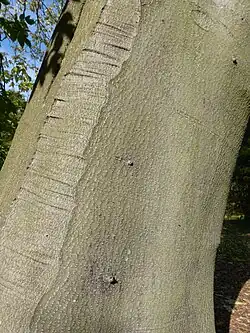 Кора серая, гладкая, с небольшими чечевичками. Схожа с корой бука.