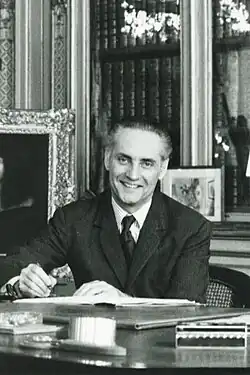 2 апреля 1973 года в качестве представителя от Союза демократов в поддержку республики получил портфель министра юстиции при формировании второго правительства Мессмера в президентство Жоржа Помпиду[9] и сохранял его до победы на президентских выборах в мае 1974 года Жискара д’Эстена[10].