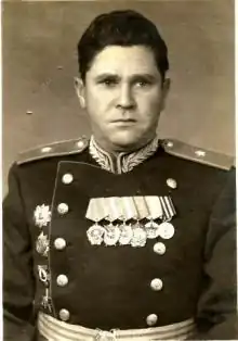 - ↑ Калашников К. А., Додонов И. Ю. Высший командный состав Вооружённых сил СССР в послевоенный период. Справочные материалы (1945—1975). Том 4. Командный состав Сухопутных войск (армейское и дивизионное звенья). Часть первая. — Усть-Каменогорск: «Медиа-Альянс», 2019. — 428 с. — ISBN 978-601-7887-31-5