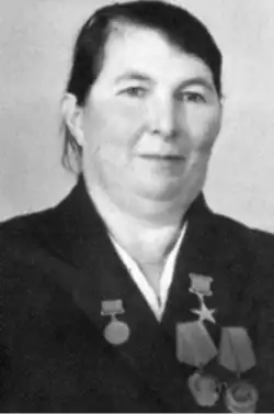 За выдающиеся трудовые достижения по итогам работы в 1949 году была награждена вторым Орденом Трудового Красного Знамени[1].