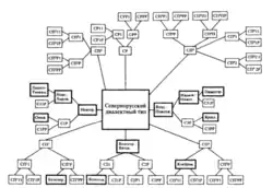 Иерархию русских диалектных типов по Н.Н. Пшеничновой можно представить в виде схем 2-5, опирающихся на схему 1.