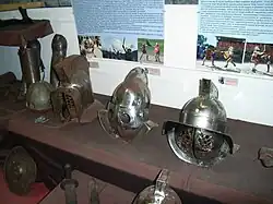 Часть рабов проходила гладиаторскую подготовку. Закутаны в железо по обычаю их народа, эти крупелярии, как их звали, были слишком неуклюжие для наступательных действий, однако, были непреклонны в обороне … Пехота осуществила лобовую атаку. Галльские ряды попятились. Бронированные воины задержали наступление: они были неуязвимы для мечей и дротиков. Однако, римляне, используя топоры и клевцы, уничтожили доспехи вместе с владельцами, подобно тому как ломают стену. Других гладиаторов сбили на землю копьями-трезубцами, и пользуясь их беспомощностью, ставили на смерть.