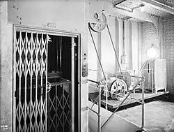 На палубе F располагались два больших кубрика, один — на 53 кочегара, другой — на 40 стюардов. Здесь же были места четырёх смазчиков и пяти почтовых клерков. В кормовой части находились кухня обеденного салона третьего класса, каюты главного механика и его помощников[63]. В носовой оконечности палубы G располагались кубрики для 15 кочегаров и 30 смазчиков. За ними по правому борту размещалось почтовое отделение, в котором сортировались почтовые отправления[64]. Пространство между переборками М и N занимали кладовые с мясом, рыбой, молоком, мороженым, фруктами, овощами, яйцами, маслом и камера разморозки. Для быстрой доставки продовольствия на кухни использовались конвейерные лифты. Основная часть продуктов хранилась в больших морозильных камерах. В роли хладагента в них выступал углекислый газ. Каждая рефрижераторная установка состояла из двух сдвоенных компрессоров. В конденсаторы закачивалась морская вода из цистерны на нижней палубе, охлаждая газ, сжиженный при большом давлении. Затем хладагент подавался в рубашки охлаждения различных отсеков и возвращался в компрессоры для повторного использования[65].