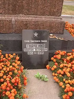 Платон Петрович Ткаченко (1915—1944) — командир танка 10-го танкового полка 10-й танковой бригады 38-й армии Юго-Западного фронта, гвардии старший лейтенант. Герой Советского Союза (1941).