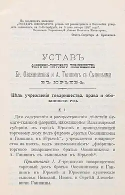 | Товарищество братьев Овсянниковых и А. Ганшина с сыновьями | |