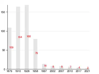 Число жителей по семейным спискам 1879 г.: 51 м. п., 58 ж. п.; по приходским сведениям 1879 г.: 55 м. п., 64 ж. п[3].