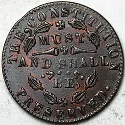Хотя ещё до Гражданской войны был принят закон, устанавливавший монополию монетного двора США на чеканку монет, токены стали формально незаконными лишь после того, как Конгресс Соединённых Штатов принял закон 22 апреля 1864, запрещающий выпуск каких-либо одно- или двухцентовых монет, токенов или других средств оплаты. 8 июня 1864 дополнительно был принят закон, который запретил любую чеканку монет в частном порядке[1].