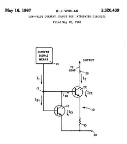 - ↑ U.S. Patent 3 320 439 «Low-value current source for integrated circuits», заявка 1965-05-26, выдан 1967-05-16