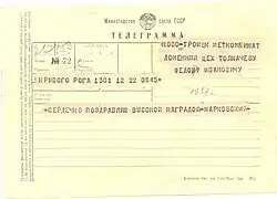 - Медаль «Серп и Молот» (19.07.1958);
